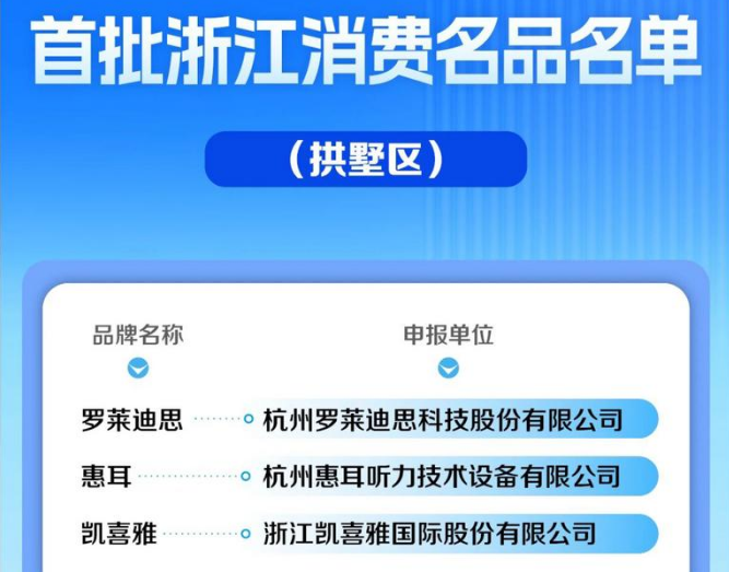 近日,省经信厅公布首批浙江消费名品名单,拱墅区3个企业品牌入选。