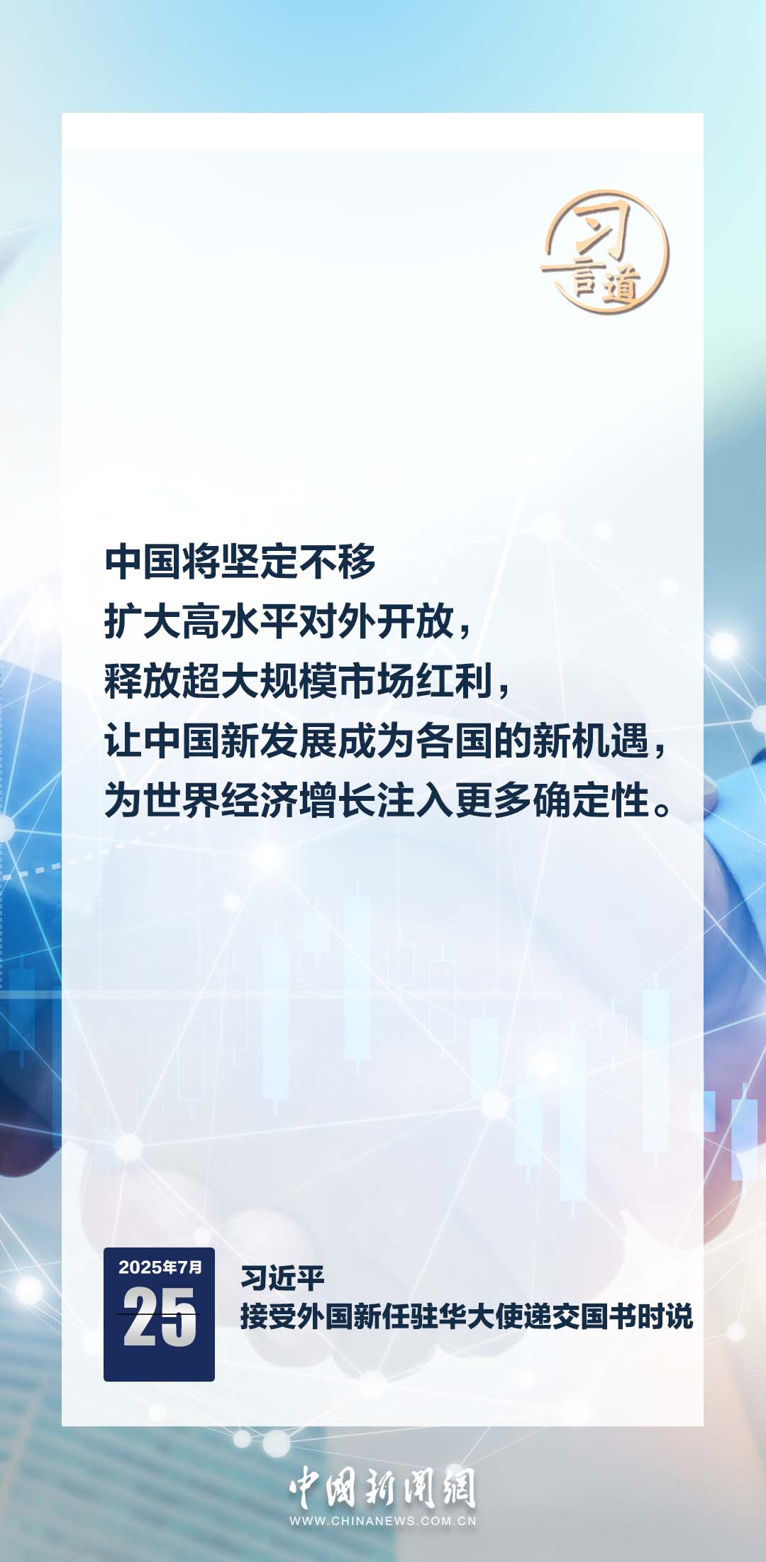 7月25日,国家主席习近平在北京人民大会堂接受16位驻华大使递交国书。仪式结束后,习近平在北京厅对使节们发表讲话。习近平指出——