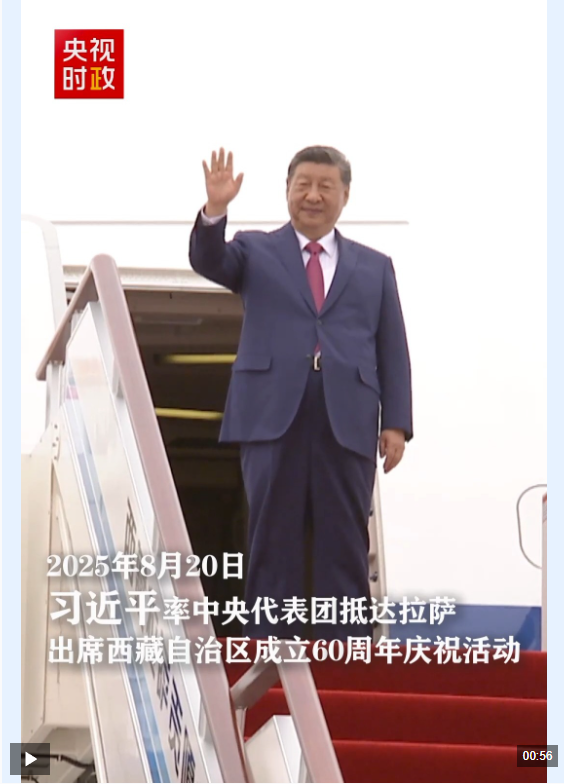 央视新闻讯 中共中央总书记、国家主席、中央军委主席习近平率中央代表团20日中午乘专机抵达拉萨,出席西藏自治区成立60周年庆祝活动。