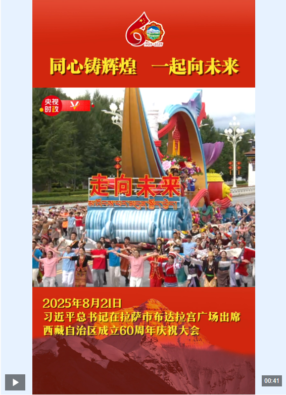21日上午,习近平总书记在拉萨市布达拉宫广场出席西藏自治区成立60周年庆祝大会,同西藏各族各界干部群众约2万人共同欢聚,热烈庆祝西藏自治区成立60周年。