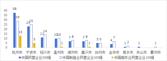 区域梯次分布,杭甬绍数量相对集中。三张榜单覆盖全省11个市(去重后共145家企业),杭州(46家)、宁波(32家)、绍兴(18家)位居前三;“中国民营企业500强”覆盖10个地市、45个县(市、区)(衢州无企业上榜),杭甬绍分别以38家、23家、11家领先,其中萧山区(12家)为全省区县榜首;“中国制造业民营企业500强”覆盖10个地市(舟山无企业上榜),“中国服务业民营企业100强”则主要集聚于杭州、宁波双城。
