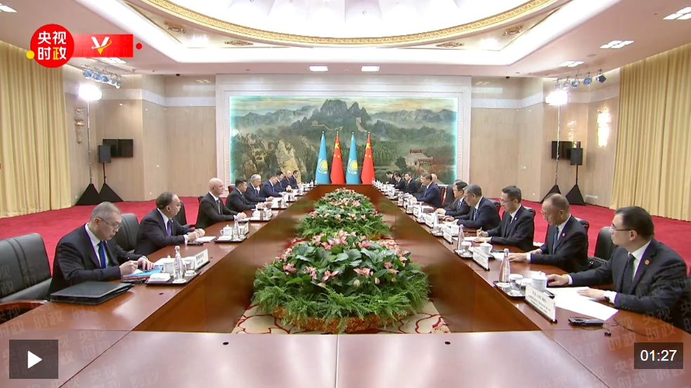 托卡耶夫说:“尊敬的习近平主席先生,亲爱的朋友,我们全力支持贵国担任上海合作组织的轮值主席国,并积极参与推动本组织日程中的广泛议题。我还想庆祝世界反法西斯战争胜利和中国人民抗日战争胜利80周年。在您的亲自支持下,我们哈中关系在前所未有的高度发展。”