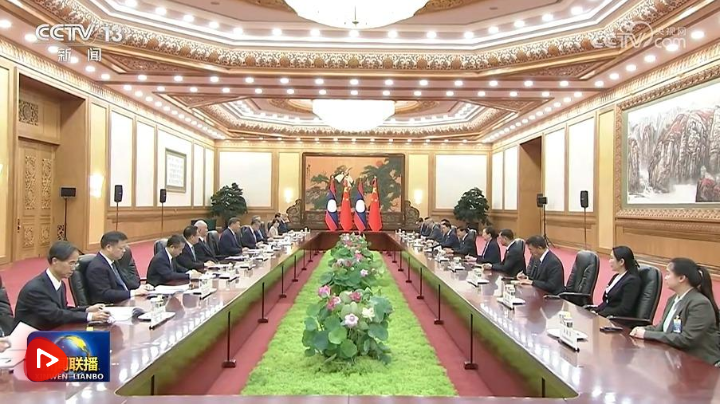 央视网讯 9月4日上午,中共中央总书记、国家主席习近平在人民大会堂会见来华出席2025年上海合作组织峰会和纪念中国人民抗日战争暨世界反法西斯战争胜利80周年活动并进行工作访问的老挝人民革命党中央总书记、国家主席通伦。