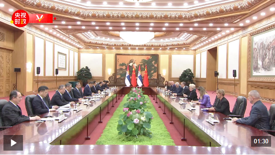 武契奇说:“尊敬的习主席,您始终以国际关系平等为基石,秉持不干涉他国内政原则,坚持将人民福祉置于全球发展的核心位置,致力于切实解决各国人民关切的问题,并推动形成有效成果。这些理念都是塞尔维亚将始终坚定支持的好构想。中国是我们的铁杆朋友,塞尔维亚永远不会忘记。”