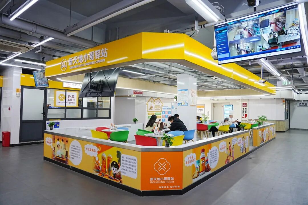 新天地农贸市场无堂食外卖聚集区场所面积约1400平方米,内设21个外卖档口,两个共享仓库、一个共享粗加工间和一座小哥驿站,于去年12月完成改造并投入运营。