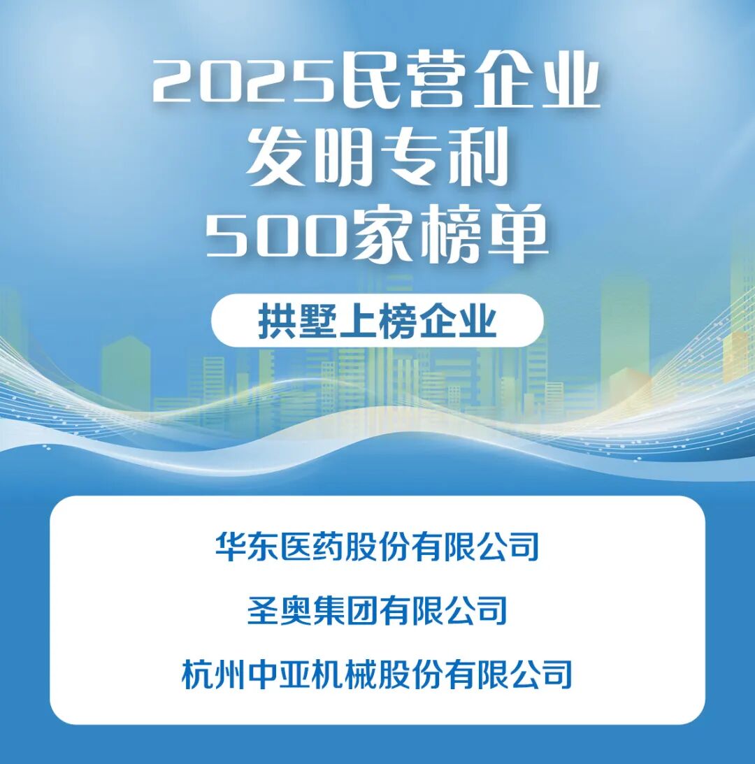 近日,全国工商联发布“2025民营企业研发投入500家”和“2025民营企业发明专利500家”榜单,拱墅区华东医药上榜“2025民营企业研发投入500家”,华东医药、圣奥集团、中亚机械上榜“2025民营企业发明专利500家”。和小布一起来了解一下他们吧!