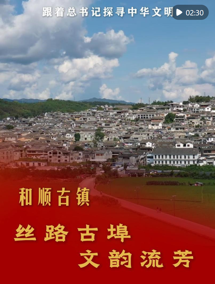 2020年1月19日,习近平总书记来到云南腾冲和顺古镇考察调研。和顺是古代川、滇、缅、印南方陆上“丝绸之路”的必经之地,保存了比较完整的明清古建筑群。考察中,习近平总书记走进和顺图书馆,了解古镇历史文化传承和振兴文化教育情况。