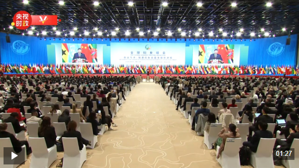 10月13日上午,国家主席习近平在北京国家会议中心出席全球妇女峰会开幕式并发表主旨讲话。