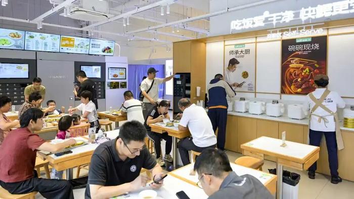 10月16日,由祥符街道星桥社区打造、快鳄(杭州)科技有限公司运营的全市首家“AI星厨智慧大运河社区食堂”正式开业,像李阿姨这样早早来“尝鲜”的居民挤满了大厅。食堂里暖意融融,背景音乐与餐具的清脆碰撞声交织,不少居民举着手机拍摄餐桌上的美食,或是记录与家人围坐的温馨一刻。