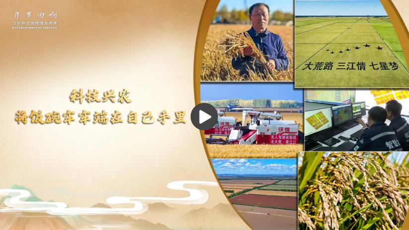 2018年9月25日,正在黑龙江省考察的习近平总书记来到七星农场北大荒精准农业农机中心。他走进稻田,拿起一把稻穗,看谷粒、观成色。总书记指出,中国人要把饭碗端在自己手里,而且要装自己的粮食。他嘱托北大荒人,农业要振兴,就要插上科技的翅膀。