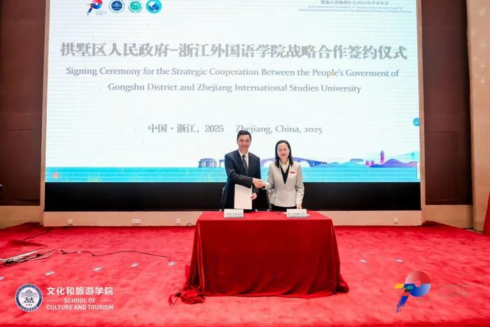 10月23日上午,2025“人民的运河 游客的运河”国际学术研讨会上,拱墅区人民政府-浙江外国语学院战略合作签约仪式举行。