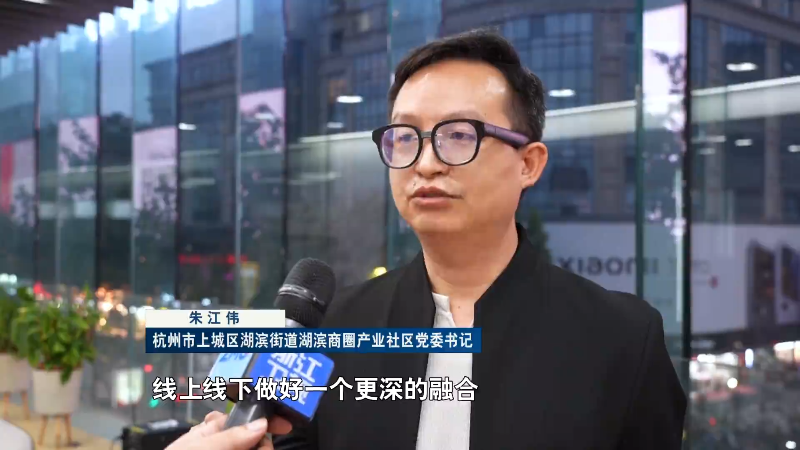 杭州市上城区湖滨街道湖滨商圈产业社区党委书记 朱江伟:线上线下做好一个更深的融合,促进我们的游客也好,市民也好,可以在来到我们湖滨商圈之后,可以感受到更多的消费场景。