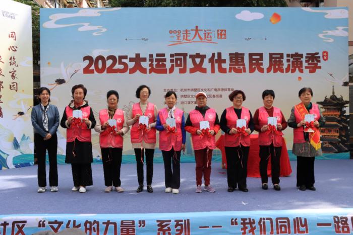整场活动以文艺汇演热闹开场,社区本土团队中的王马民乐队、乐享王马舞蹈艺术团和瓯雅艺术团、辖区单位杭州老干部大学与浙江演艺集团浙江曲艺杂技总团三方力量汇聚,共同呈现了社区文化活力的动人乐章。《祖国颂歌》《迎盛世举金杯》《沂蒙山选段——等着我》《今天是你的生日》等精彩节目接连上演,形式涵盖民乐演奏、歌舞、杂技等,为居民带来一场高水平的视听盛宴。社区书画社老师现场挥毫,“邻里一家亲 共创新未来”十个大字苍劲有力,带来一抹雅致亮色。
