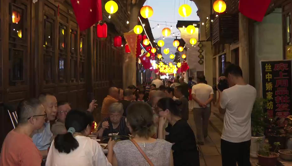 桐乡崇福镇的“横街纳凉宴”更添烟火气——300多米长的老街上,26张八仙桌依次排开,松子烧鲈鱼、红烧羊肉等地道美食端上桌,200名居民与游客围坐共餐,聊家常、品美味,仿佛回到儿时的热闹集市。