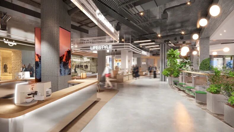 升级后的运河印悦里,更注重休闲体验与文旅融合。项目重点打造 “社区透景灰空间”与“下沉广场”两大场景,通过开放式设计,让阳光、微风和运河景致自然流淌进来,让逛街购物变得更加惬意,成为一个开放、惬意的“城市客厅”。