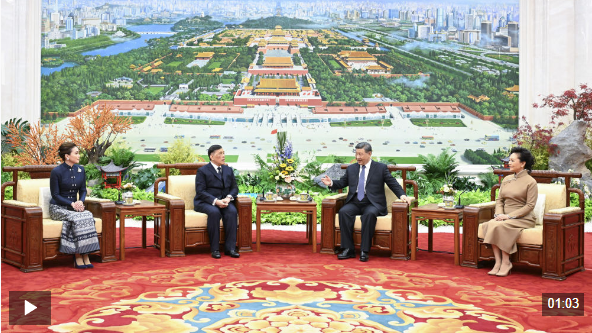习近平表示,2022年,我和我的夫人彭丽媛对泰国进行访问,同国王和王后亲切会面,就巩固中泰友好深入交换意见,引领中泰关系迈入构建命运共同体的新阶段。
