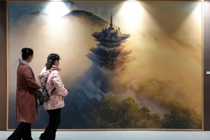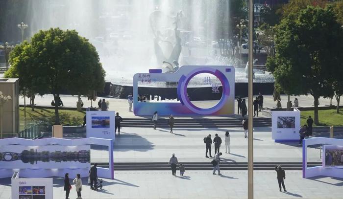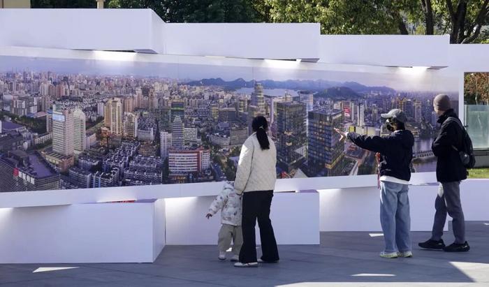 步入展厅,观众仿佛开启了一场穿越时空的视觉旅程。展览巧妙打破传统板块界限,以流畅的叙事逻辑将“宋韵今辉”“潮流地标”“产城融合”“人间烟火”“特邀镜界”“城院潮新”“流光溢彩”七大板块有机融合。