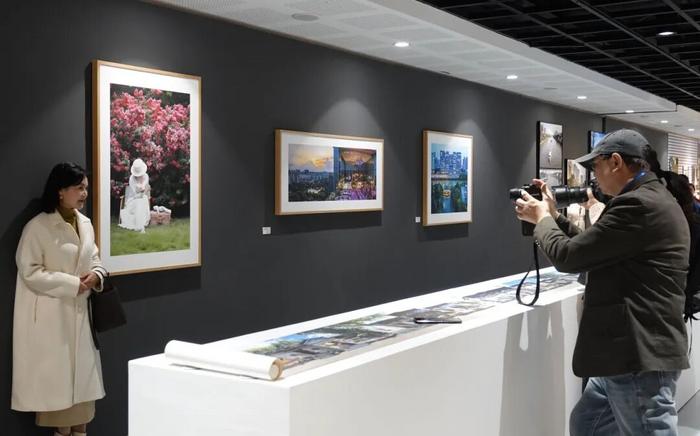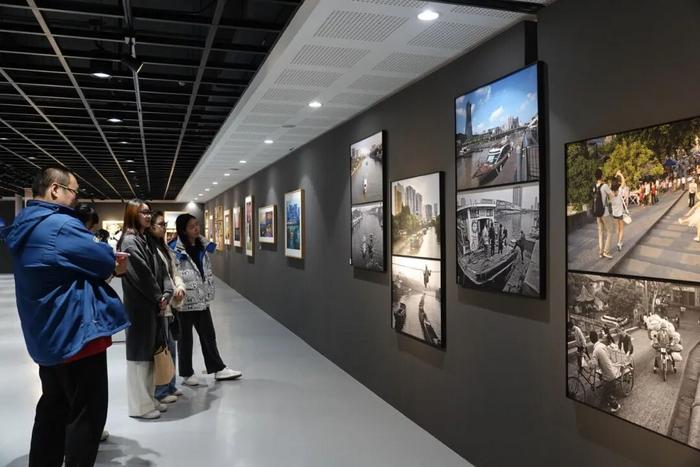 在展陈架构上,展览创造性地构建了“室内精品展”与“户外公共展”双轨并行的观展体系。室内展区于浙江展览馆内,经策展团队精心遴选的100余件优秀作品,依循“时空穿梭”的叙事逻辑进行布局。通过灯光、影调与展墙色彩的细腻变化,配合科学规划的观展动线,引导观众在移步换景间自然而然地感知拱墅从历史走向未来的发展脉络。每一处转角都可能遇见惊喜,每一组作品的排列都在诉说着城市演进的故事。