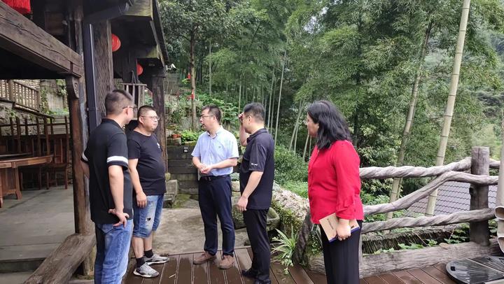 浙江财经大学金通教授带队赴武义县王宅镇紫谷村调研村内民宿经营情况,讨论农文旅融合发展对策。省社科联供图。