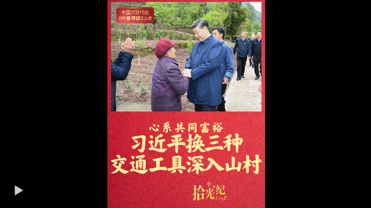 中国式现代化是全体人民共同富裕的现代化。2019年,习近平总书记换三种交通工具深入重庆山村,在同乡亲们座谈时强调,“发展一定要共同富裕,不能出现两极分化”。这是人民领袖的铿锵誓言,也是百年大党的价值追求。