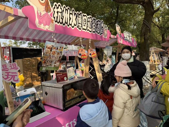 在杭州水博园道谷酒店展位前,正在笼中张望的一只兔子,吸引小朋友蹲下围观。负责人白女士介绍,酒店设有萌宠乐园,拥有兔子、豚鼠、鸟类等30多种动物,打造萌宠体验式消费场景。“去年暑期引入这一业态后,一直很受欢迎。”此次年货节,酒店推出49元的单人萌宠互动券和400元含住宿的亲子房券,“过年一家人住酒店,与动物互动,是亲子游的新选择。”