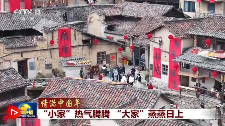 河山添锦绣,情满中国年。城市乡村张灯结彩、喜庆祥和,家家户户辞旧迎新、开心快乐。在铿锵的鼓乐声中,在精彩的展演中,人们礼赞幸福生活,许下美好心愿。团圆时刻,一个个“小家”的热气腾腾,映照着祖国“大家”的蒸蒸日上。
