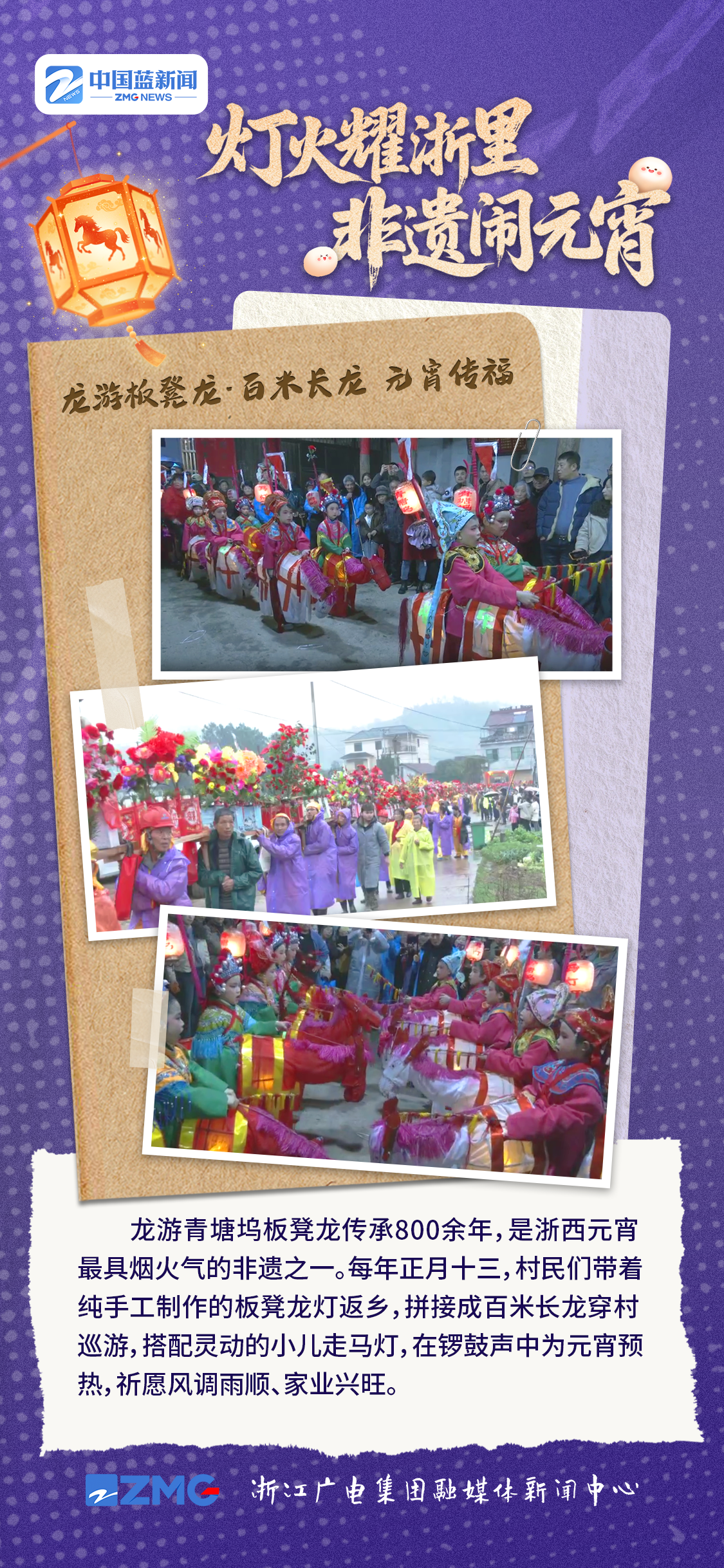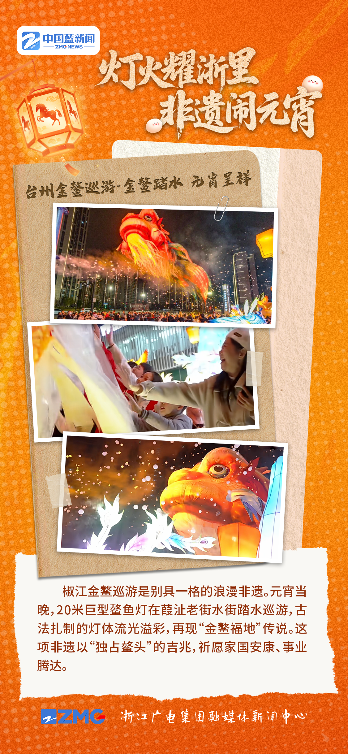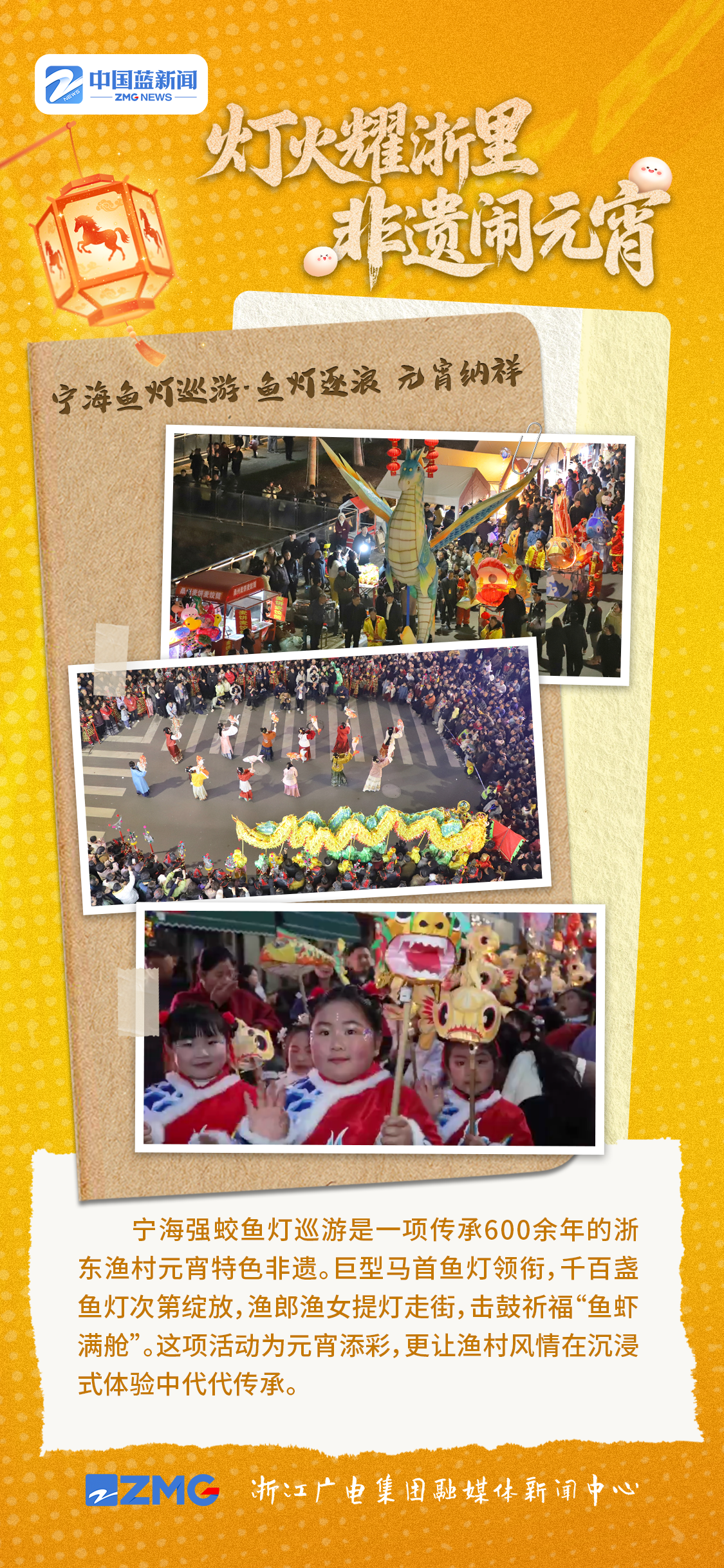 元宵佳节,浙江大地花灯如昼、非遗焕彩。锣鼓声中百米板凳龙长舞,600人队伍高举百家烛照亮古巷……各类民俗活动传递着团圆祈福的温暖,尽显烟火味十足的江南年味。