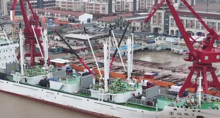 海港潮声起,产业活力足。舟山国家远洋渔业基地惠群码头,吊机轻缓起落,远洋渔获快速上岸分流。码头满负荷运转,生产计划一环紧扣一环,恰是海上生产好时节,今年的产量有望再创新高。