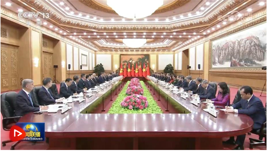 央视网讯 4月15日上午,中共中央总书记、国家主席习近平在人民大会堂同来华进行国事访问的越共中央总书记、国家主席苏林举行会谈。