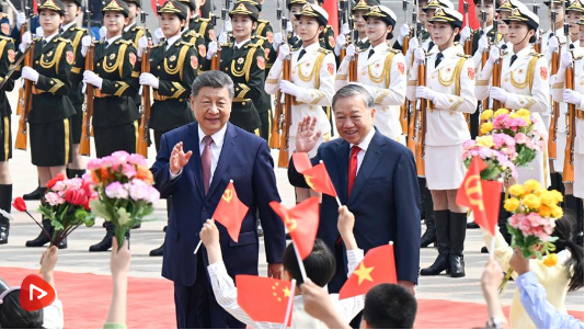 苏林表示,这是我当选越南国家主席后首次出访,也正值习近平总书记、国家主席去年对越进行历史性访问一周年,充分反映了总书记同志所说的“邻里越走越亲”。越方感谢中国共产党、政府和人民对越共十四大提供的重要政治支持,愿始终同中方赓续传统友谊,推动两国全面战略合作伙伴关系和具有战略意义的命运共同体不断发展。越方祝贺中国胜利完成“十四五”规划并取得历史性成就,相信中方将顺利实施“十五五”规划,不断推进高质量发展和社会主义现代化建设,如期实现第二个百年奋斗目标,并成为世界和平发展的支柱力量和首要动力。