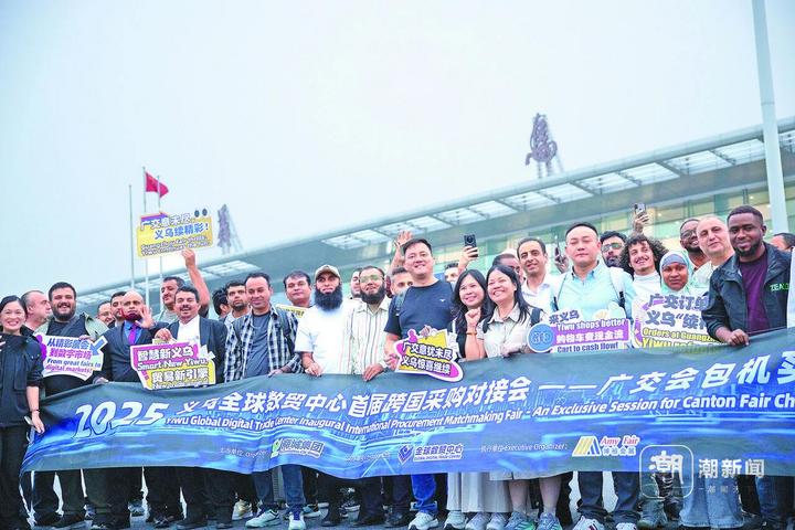 100余位来自欧洲、中东等地区的境外专业采购商包机抵达义乌,参加2025义乌全球数贸中心首届跨国采购对接会(资料照片)。 记者 倪雁强 通讯员 吴峰宇 摄